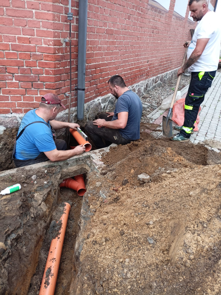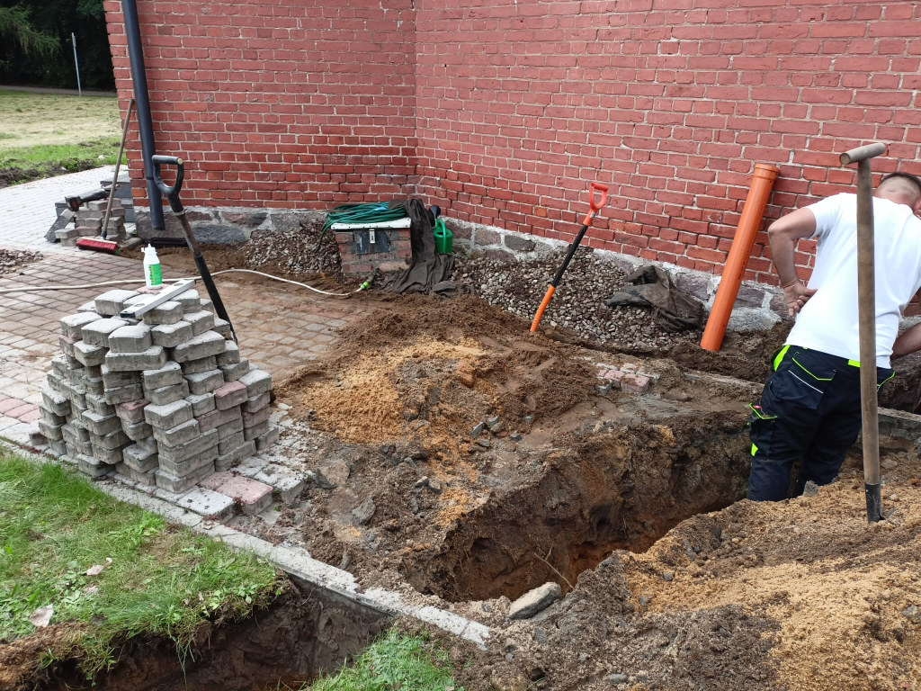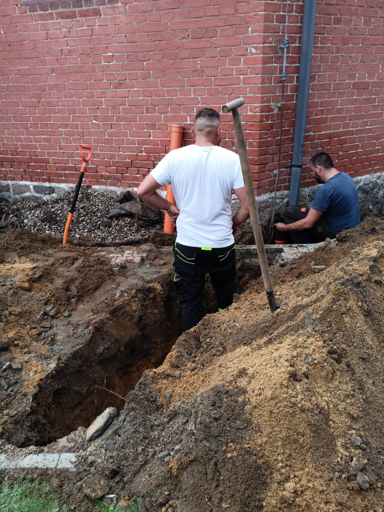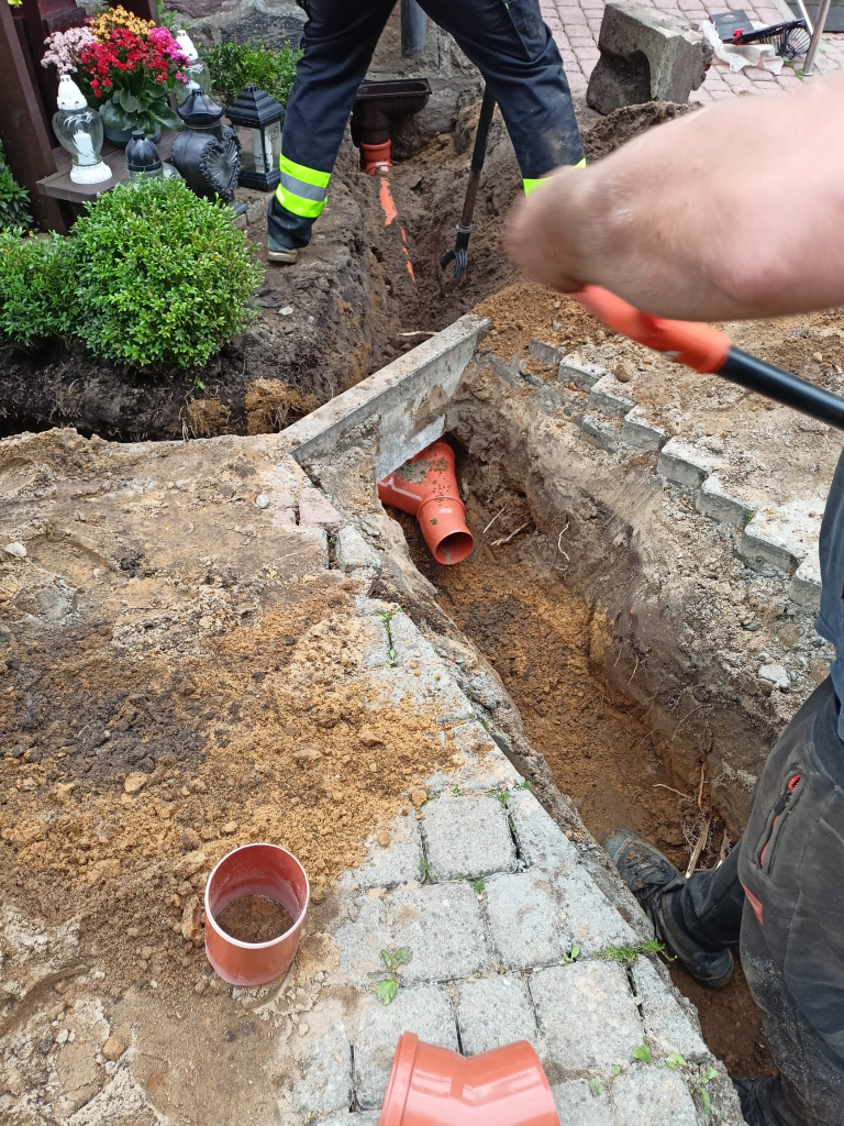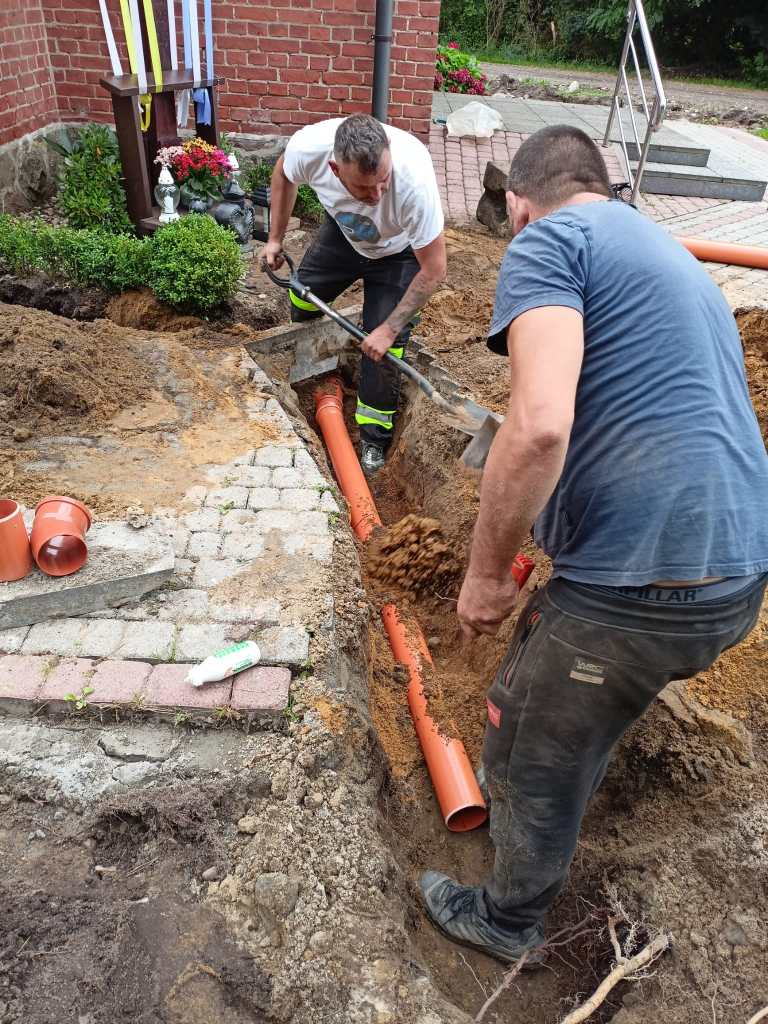 Obecnie trwają prace przy odprowadzeniu wody z rynien naszego kościoła, tak by mury nie wciągały wody z opadów deszczu. Zostały już położone odpowiednie rury zbierające wodę wraz z osadnikami rynnowymi.