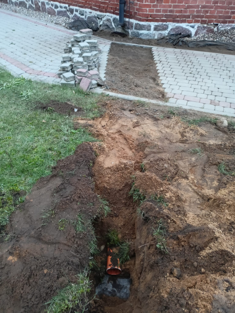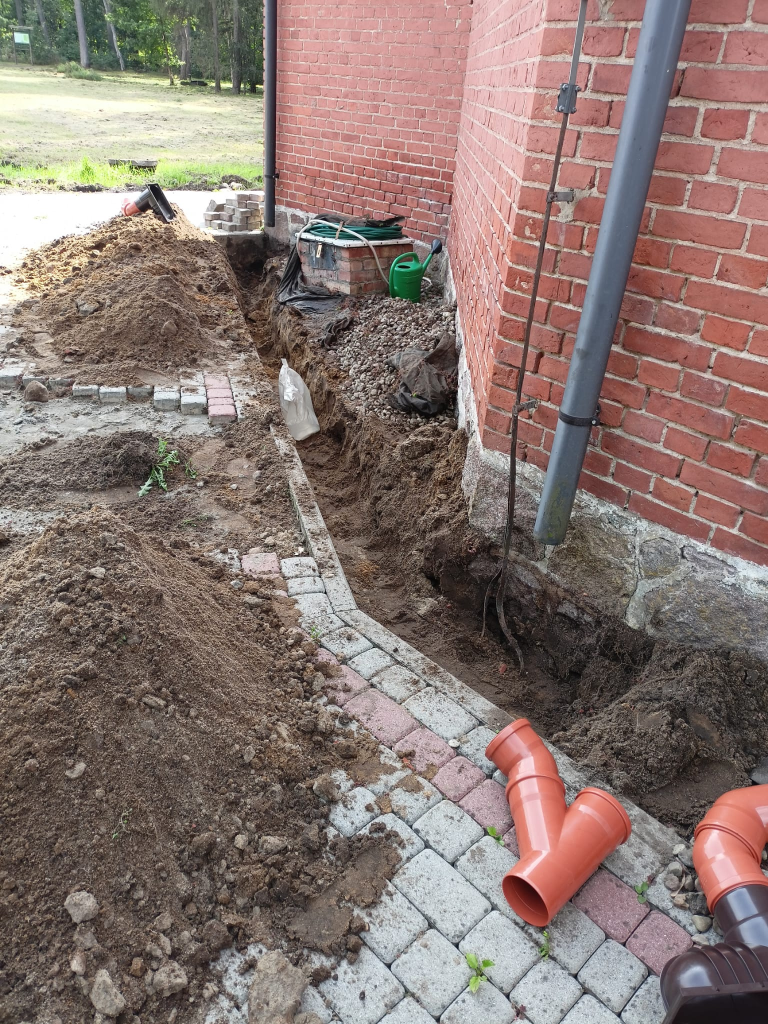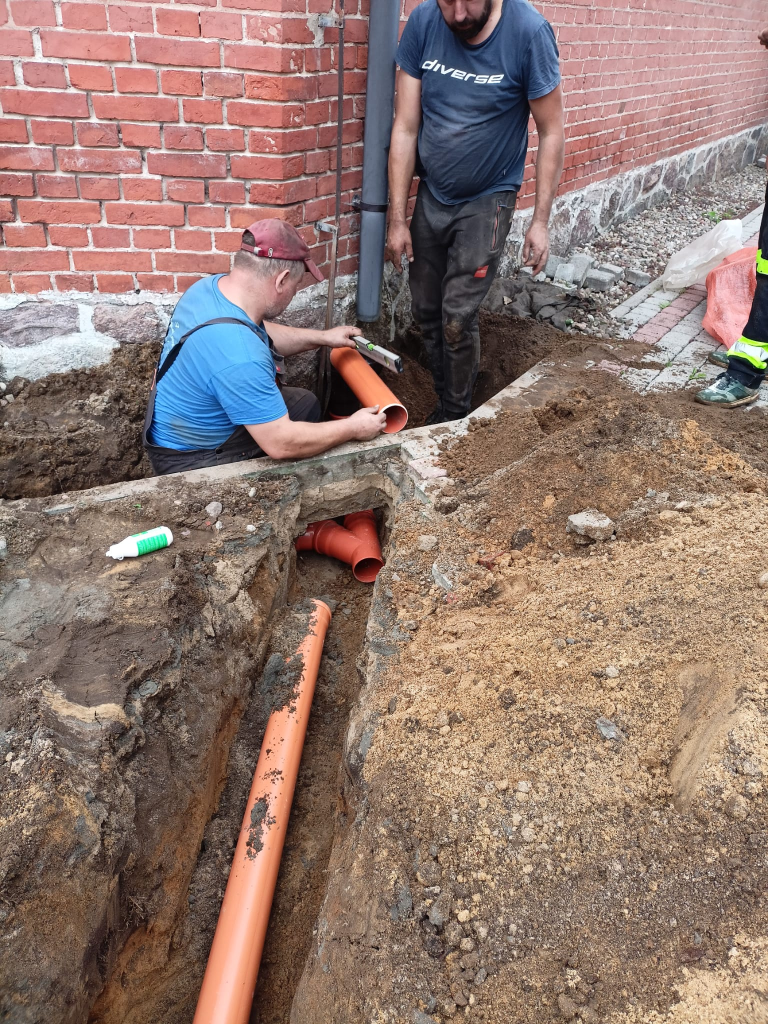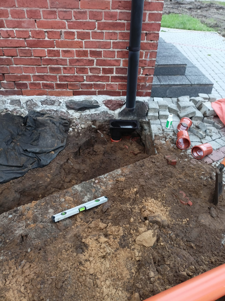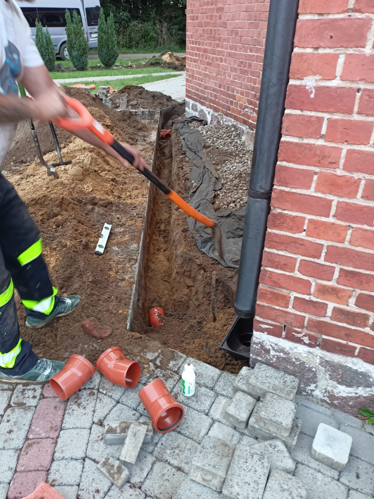 Obecnie trwają prace przy odprowadzeniu wody z rynien naszego kościoła, tak by mury nie wciągały wody z opadów deszczu. Zostały już położone odpowiednie rury zbierające wodę wraz z osadnikami rynnowymi.