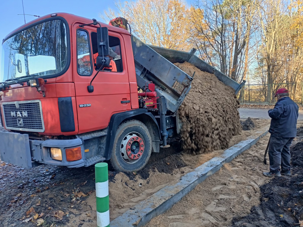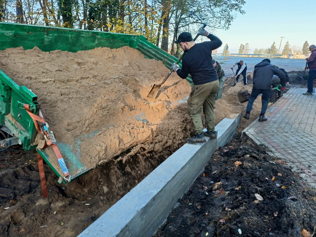 Dziękuję za żwir Panu Edwardowi Skurewiczowi. Panu Arkadiuszowi Płotce za sprzęt oraz prace koparką i transport. Bóg zapłać!