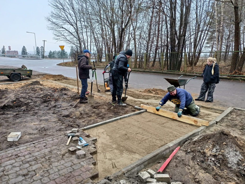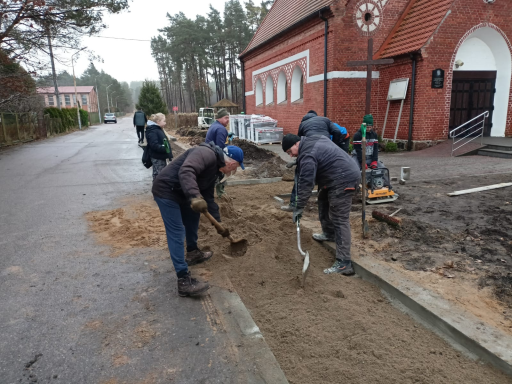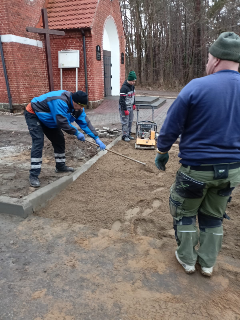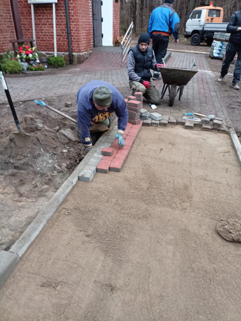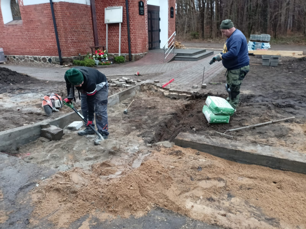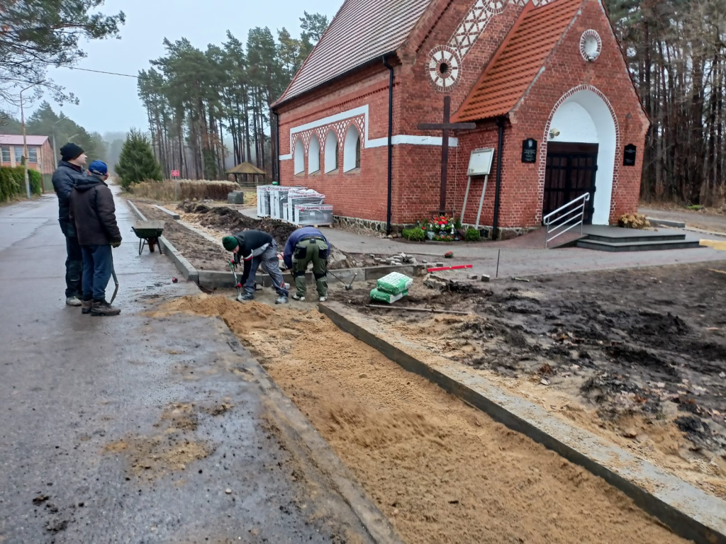 Układanie kostki przy kościele w Leśnicach