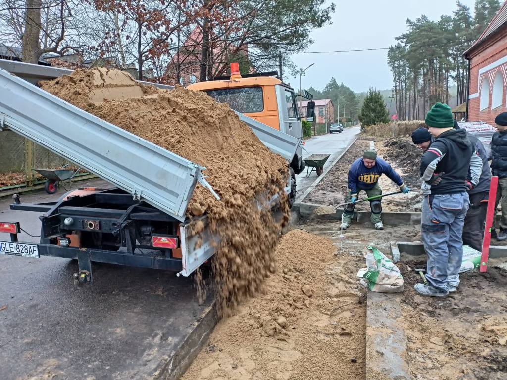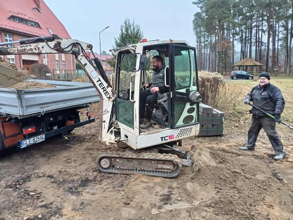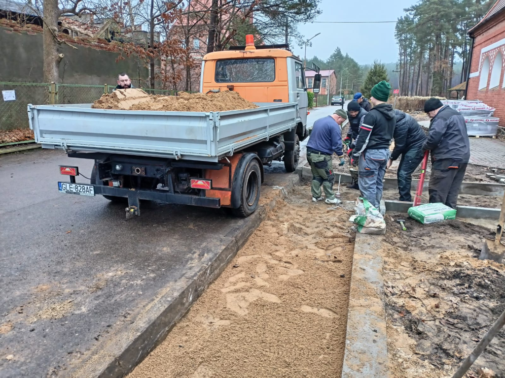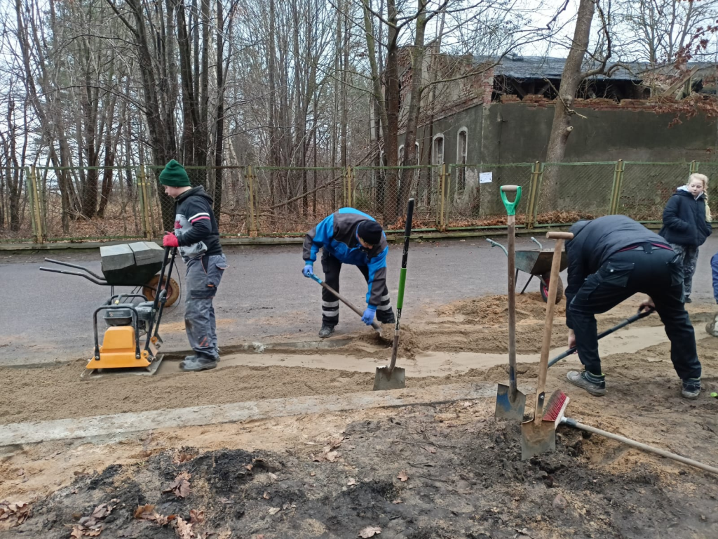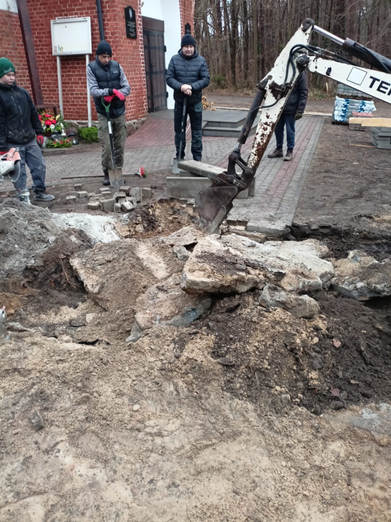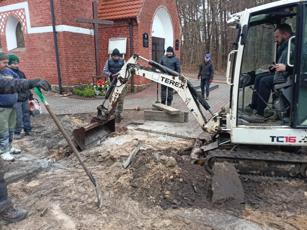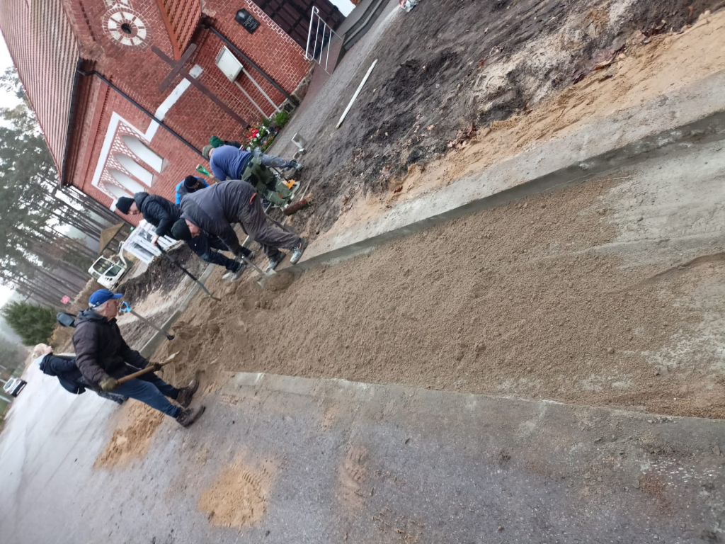 Układanie kostki przy kościele w Leśnicach