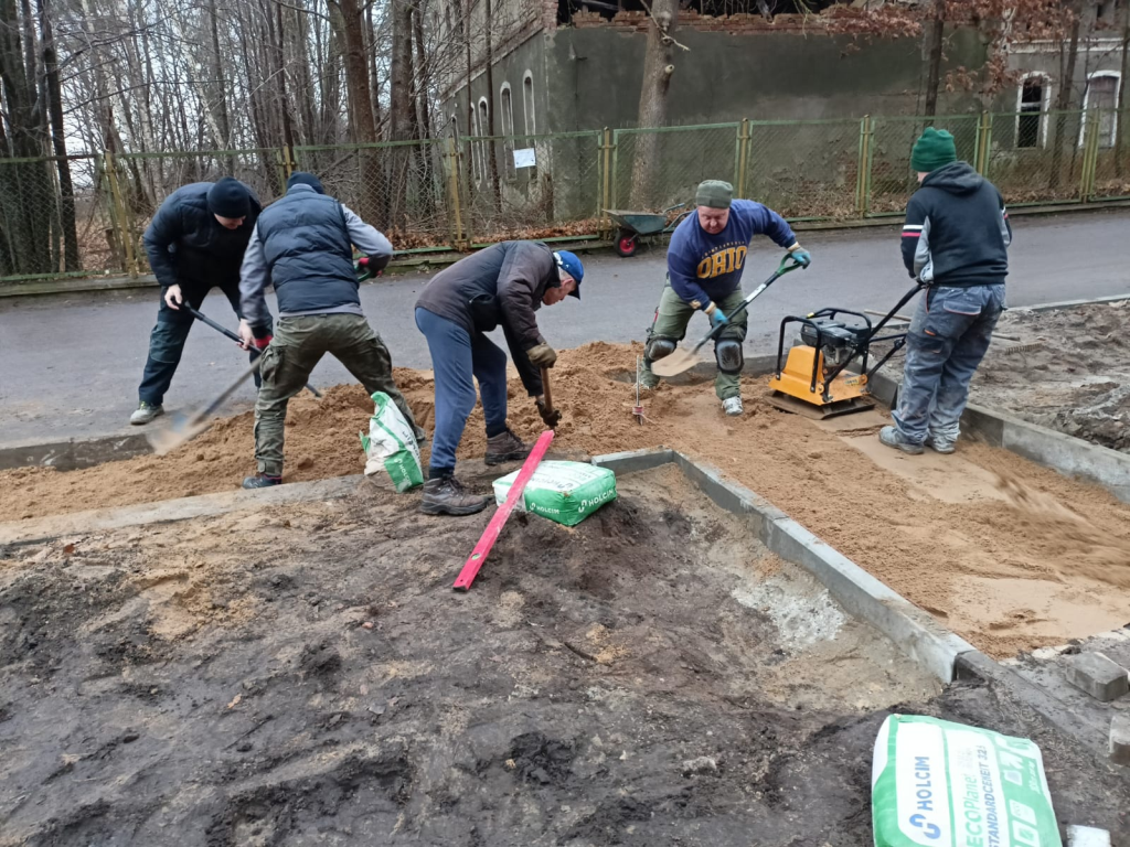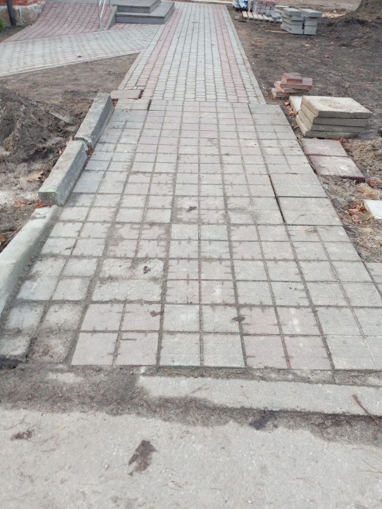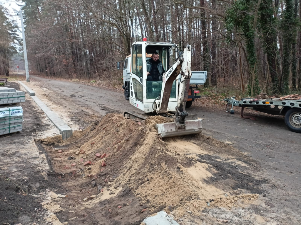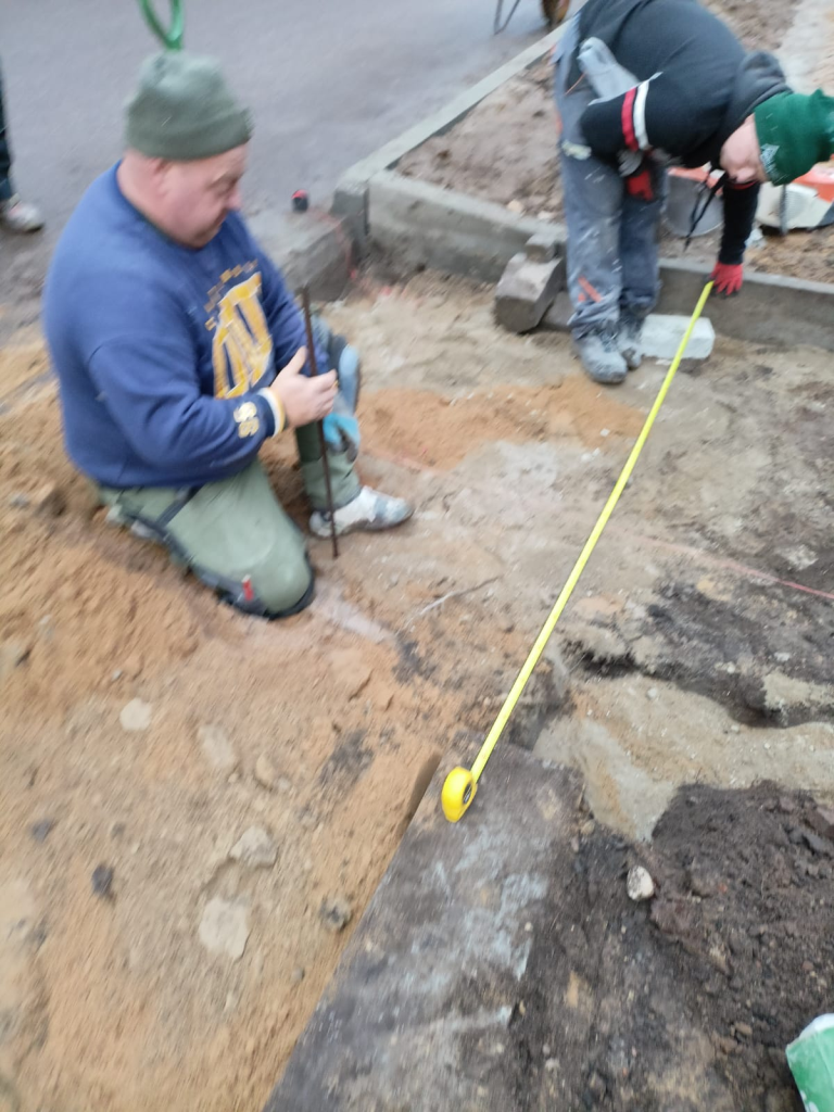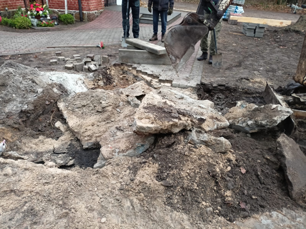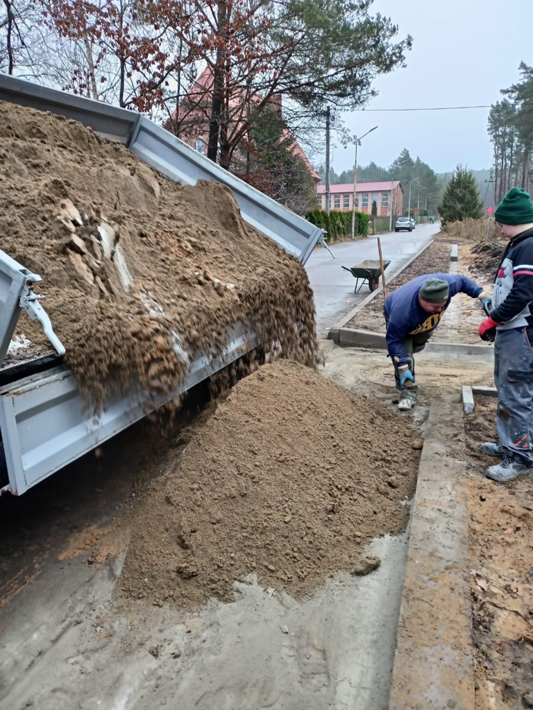 Układanie kostki przy kościele w Leśnicach