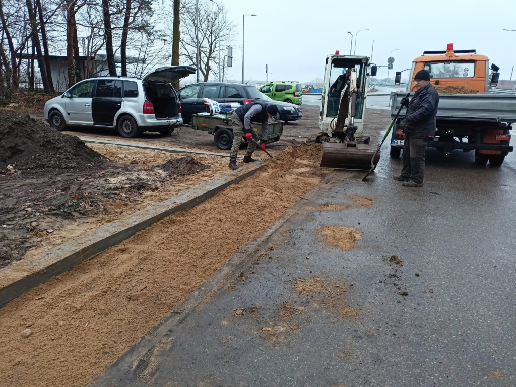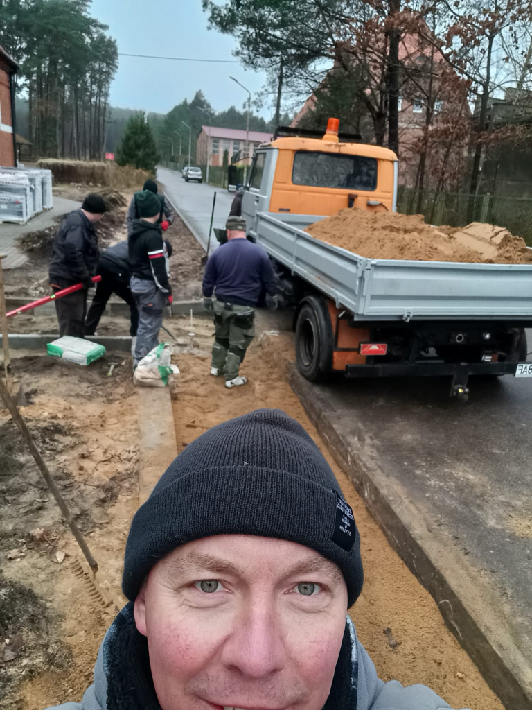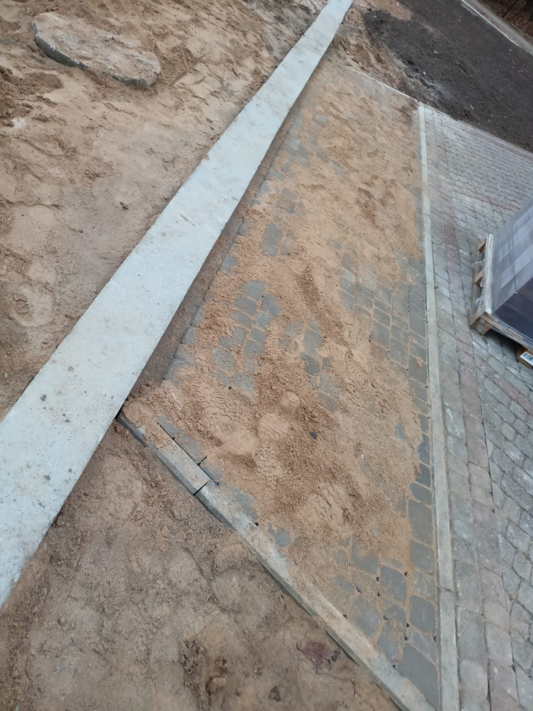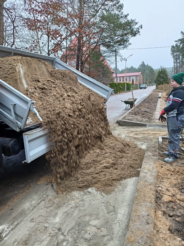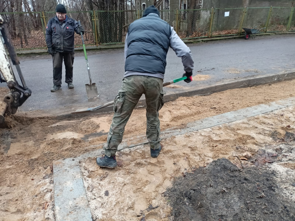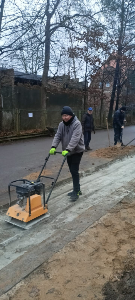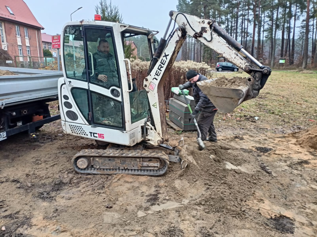 Układanie kostki przy kościele w Leśnicach