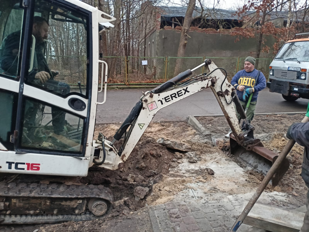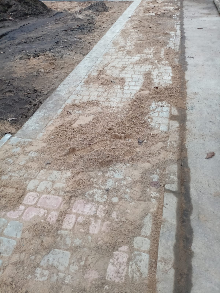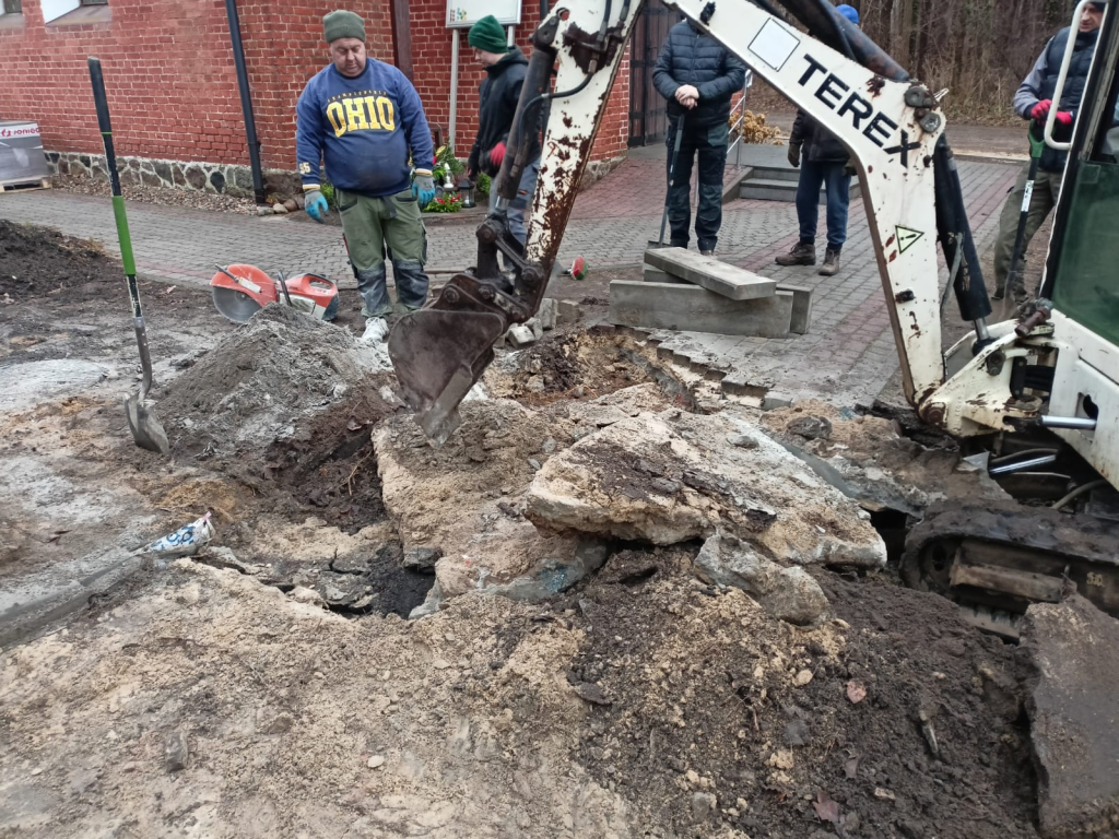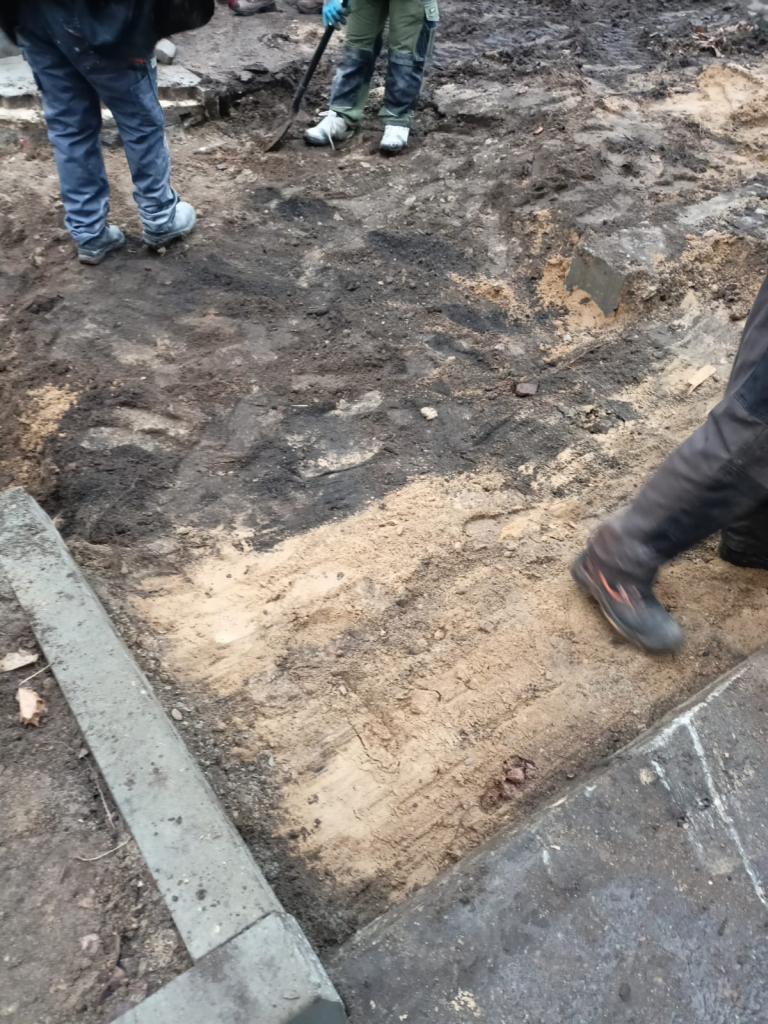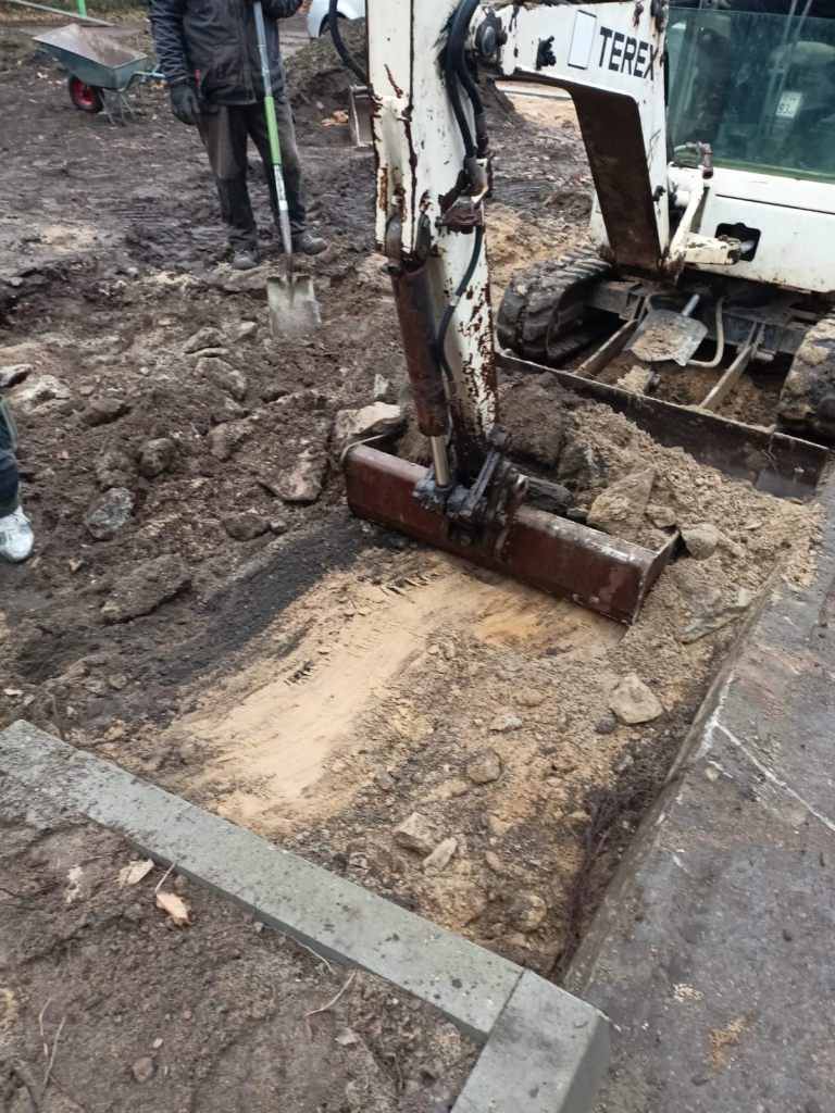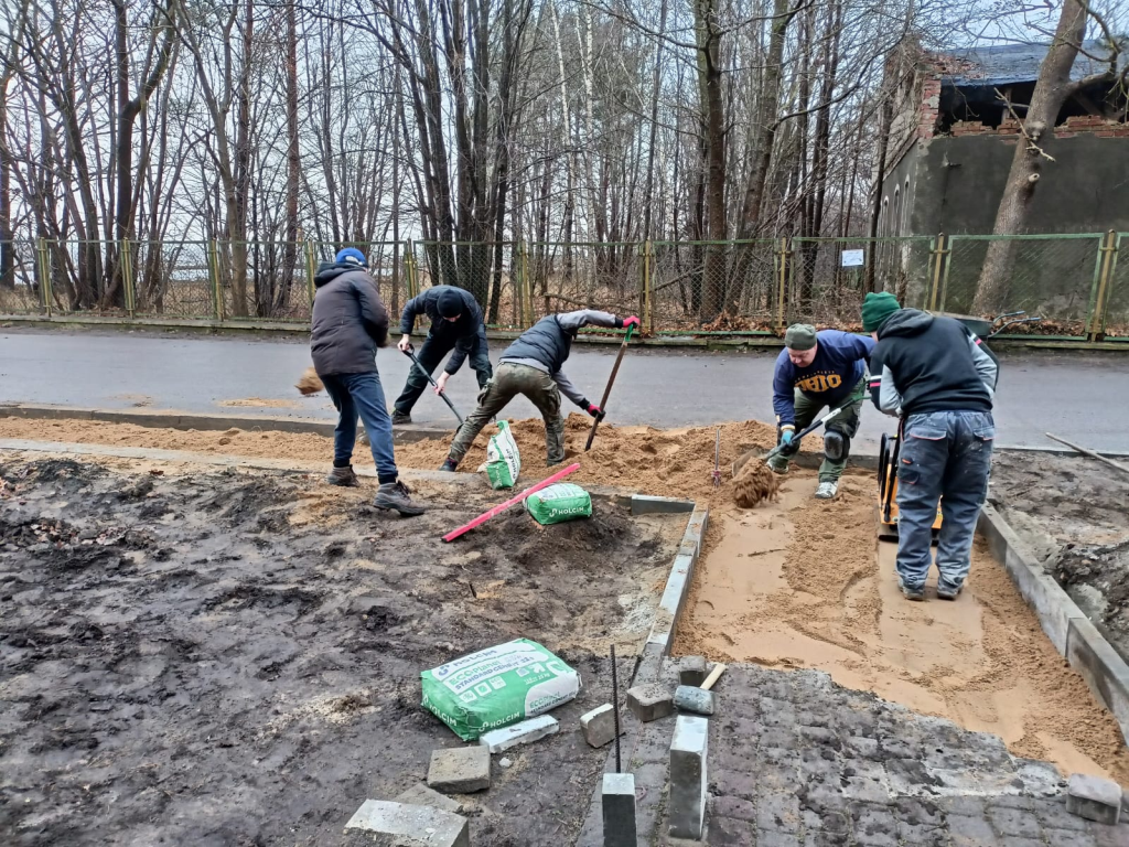 Układanie kostki przy kościele w Leśnicach