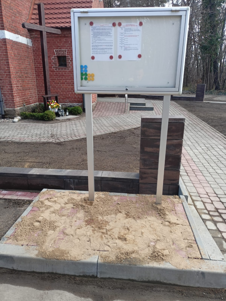 Dziękuję Panom: Januszowi Hebel, jego synowi Filipowi, Panu Arturowi Brylowskiemu, Państwu Justynie i Grzegorzowi Bugała, Panu Markowi Kijewskiemu, Jerzemu Kurek, Henrykowi Kandzora, Mariuszowi Kisiel, Mieczysławowi Samujło z Czerwieńca za prace przy naszym kościele w Leśnicach przy położeniu opaski polbrukowej po obu stronach nowego ogrodzenia, za położenie kostki przy wejściu na teren kościoła od strony zakrystii oraz pod tablicą ogłoszeń.