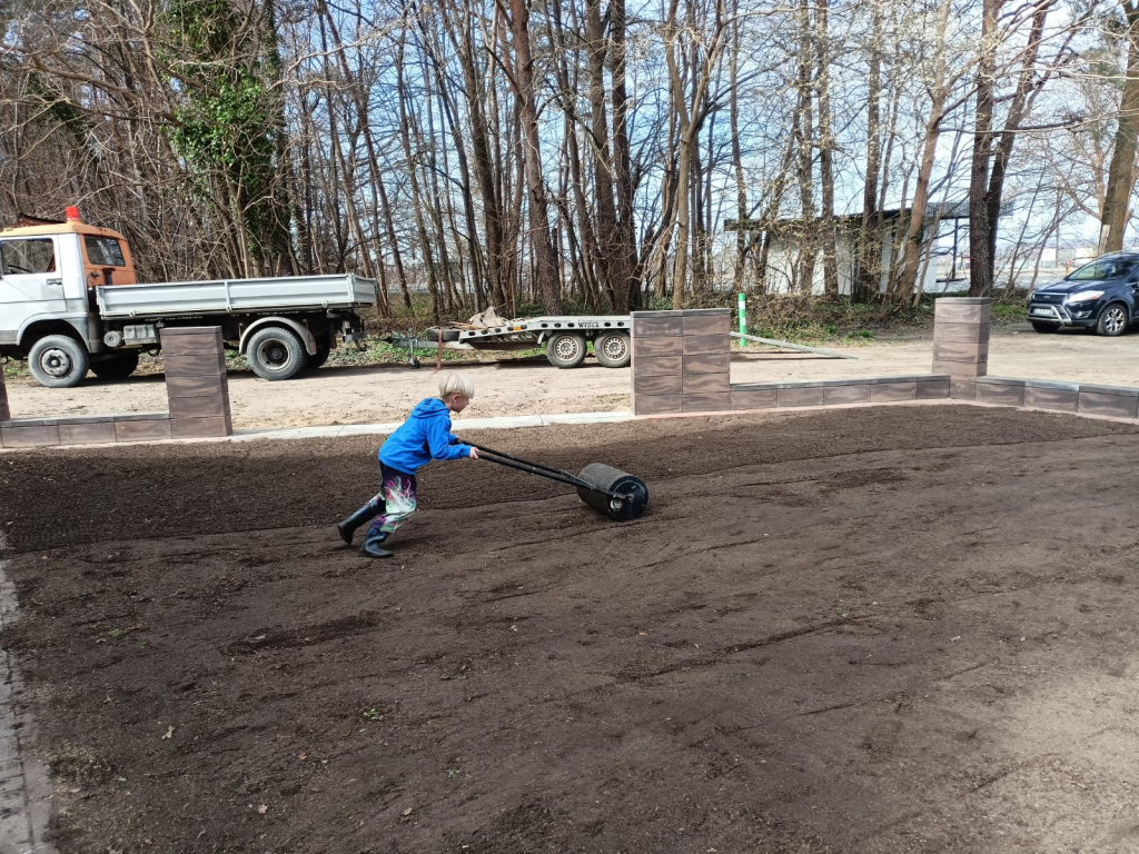 Dziękuję Panu Arkadiuszowi Płotce za ziemię potrzebną do rozplantowania, Państwu Medalion za użyczenie glebogryzarki, Panu Romanowi Gralec za użyczenie walca.